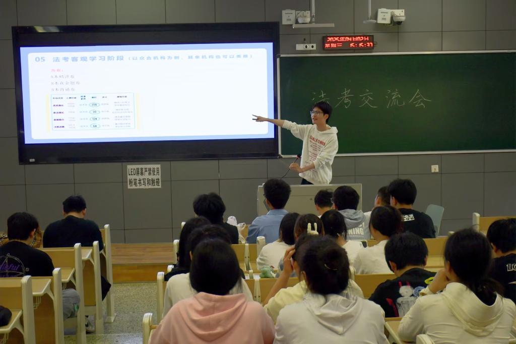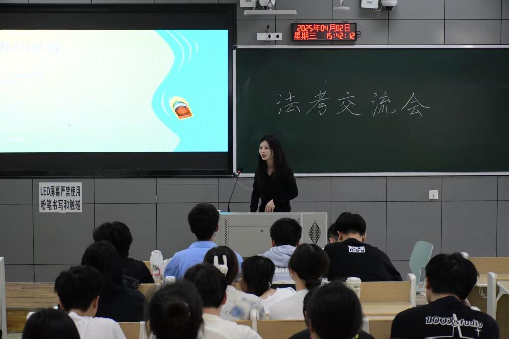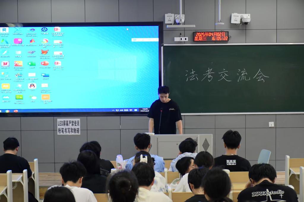 近年来,随着社会对法律专业人才的需求持续增长,报名参加法考的人数逐年攀升。然而,法考涉及科目繁多、知识点庞杂,考试难度较大,让不少考生在备考过程中感到迷茫。为助力法学学子高效备战国家统一法律职业资格考试,营造互学互助的备考氛围,3044永利集团于4月2日下午3点在1-101举办法考交流会,22级全体员工参加。 大会开始,余文询问了同学们日常对法考学习的时间安排并分享了自己一天的时间安排,接着便向同学们分享了自己的备考书籍。王烨则向同学们分享了法考网课老师以及自己的学习经验。徐淑钰从备考时间线方面告诉同学们要学会做计划,整理框架,同时要适当放松,劳逸结合和坚定自己的内心。刘书航告诉同学们可以根据个人习惯来选择不同老师。罗雯娟侧重于让同学们学会自我心态的调节。杜淳让同学们学会做好科目学习的顺序规划。最后,张旭为同学们分享了刷题技巧,让同学们学会培养题感,提升做题的效率。 此次交流会的成功举办,不仅为同学们提供了实用的备考方法,更为他们搭建了一个交流互动的平台,让同学们在交流中相互鼓励、增强信心,有效缓解了备考焦虑。