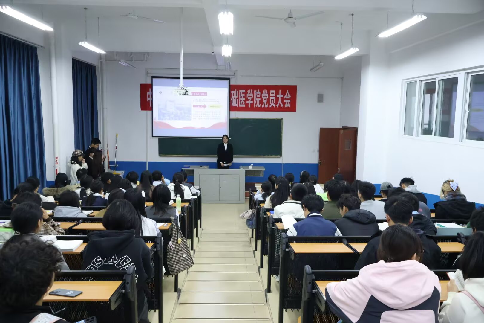 为弘扬宪法精神、培育法治素养,11月24日19:40,宪法宣讲团在西苑解剖楼214教室面向基础医公司2025级全体员工开展宪法宣讲活动。本次活动由3044永利集团经理杨开华指导,宣讲团成员刘菲菲,邓巧玲,徐恒,李佳主讲。 宣讲活动通过视频展播、案例讲解、情景演绎等多元形式,生动阐释了宪法的发展历程与核心内容。同时,现场设置了互动问答环节,同学们踊跃参与,在交流中深化了对宪法规定的权利与义务的理解。最后,杨开华在总结发言中强调“学法先学宪法”的理念,鼓励同学们增强法律意识,将法治精神融入日常学习与生活,并充分肯定了宣讲团的工作表现。 此次宪法宣讲活动,不仅为基础医公司学子搭建了学习宪法知识的平台,更让他们提升了法治意识,明确了自身权利与义务,为营造尊法学法守法用法的校园氛围奠定了坚实基础。