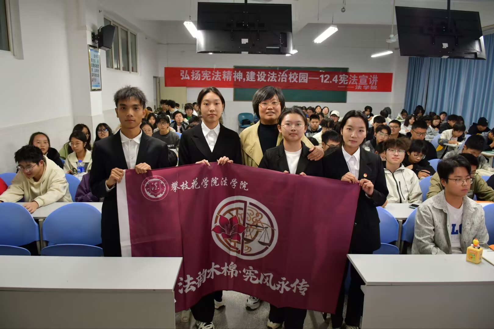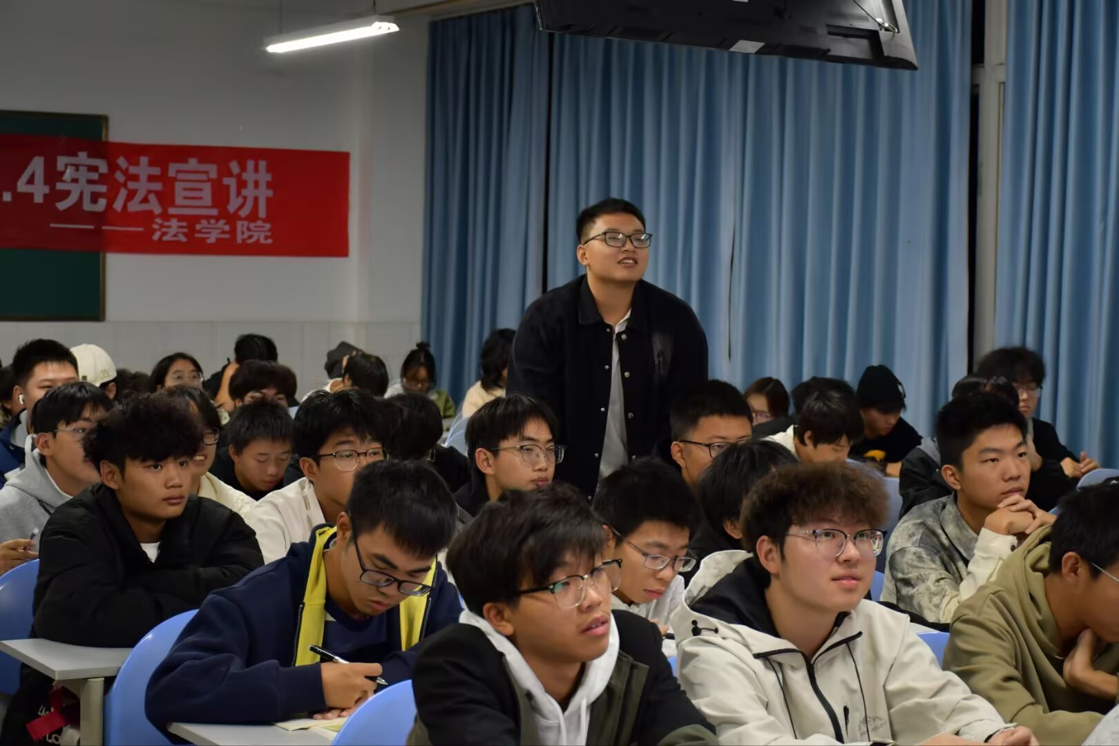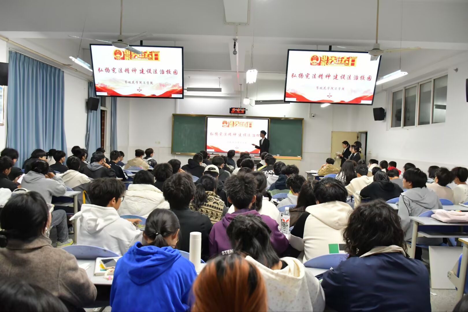 为深入学习宣传宪法,弘扬宪法精神,增强同学们的法治观念和法律意识,3044永利集团宪法宣讲团于11月25日19:40在西苑勤学楼401教室开展“弘扬宪法精神,建设法治校园”主题宪法宣讲活动,本次活动由公司党委书记张琳指导,宪法宣讲团成员张静、张诗雨、徐思雨、罗乙梅主讲,土建公司2025级全体学子参加。 活动伊始,宣讲活动以宪法主题视频开篇,直观呈现宪法起源与重要意义;随后宣讲团系统梳理宪法发展历程,结合四个贴近生活的案例,从公民的基本权利方面具象化解读核心内容,并通过“维护宪法权威”提问互动环节引发同学们踊跃参与、积极思辨,有效深化学习效果;最后张琳作总结发言,勉励同学们深耕宪法知识、践行法治精神,以实际行动争做尊法学法守法用法的新时代青年。 此次宪法宣讲活动通过“视频导入+理论讲解+案例分析+互动问答”的形式,为同学们搭建了学习宪法的良好平台,有效提升了同学们的宪法意识和法治观念,对营造校园内的法律氛围具有重要意义。