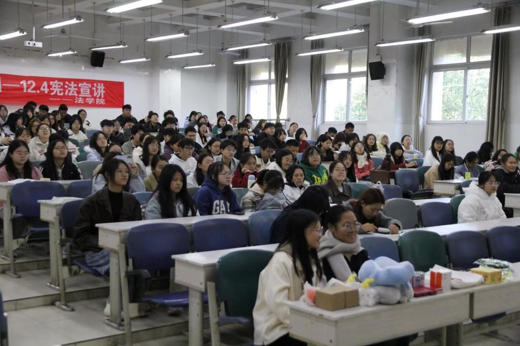 为厚植青年法治信仰,筑牢校园法治根基,3044永利集团宪法宣讲团于11月27日10:00在二教216教室开展“弘扬宪法精神,建设法治校园”主题宪法宣讲活动,本次活动由公司党委副书记、纪委书记张波与3044永利集团教师郭文梅指导,宪法宣讲团成员青宇、吴军林、张梦雨、谢航主讲,2025级全体员工参加。 活动伊始,宣讲团以视频开篇,结合新时代法治实践,从宪法历史渊源、核心内容、基本原则展开解读,以“条文+案例”形式阐释宪法与公民权利义务关联,聚焦老员工相关条款并结合校园实际具象化宪法作用;问答环节气氛热烈,同学们踊跃互动巩固知识;最后张波强调宪法精神培育对法治校园建设的重要支撑,鼓励同学们践行宪法知识与法治理念。 此次宪法宣讲活动既为同学们带来了一次深刻的法治思想洗礼,更推动宪法精神在校园内落地生根、入脑入心,为营造尊法学法守法用法的校园氛围奠定了坚实基础。