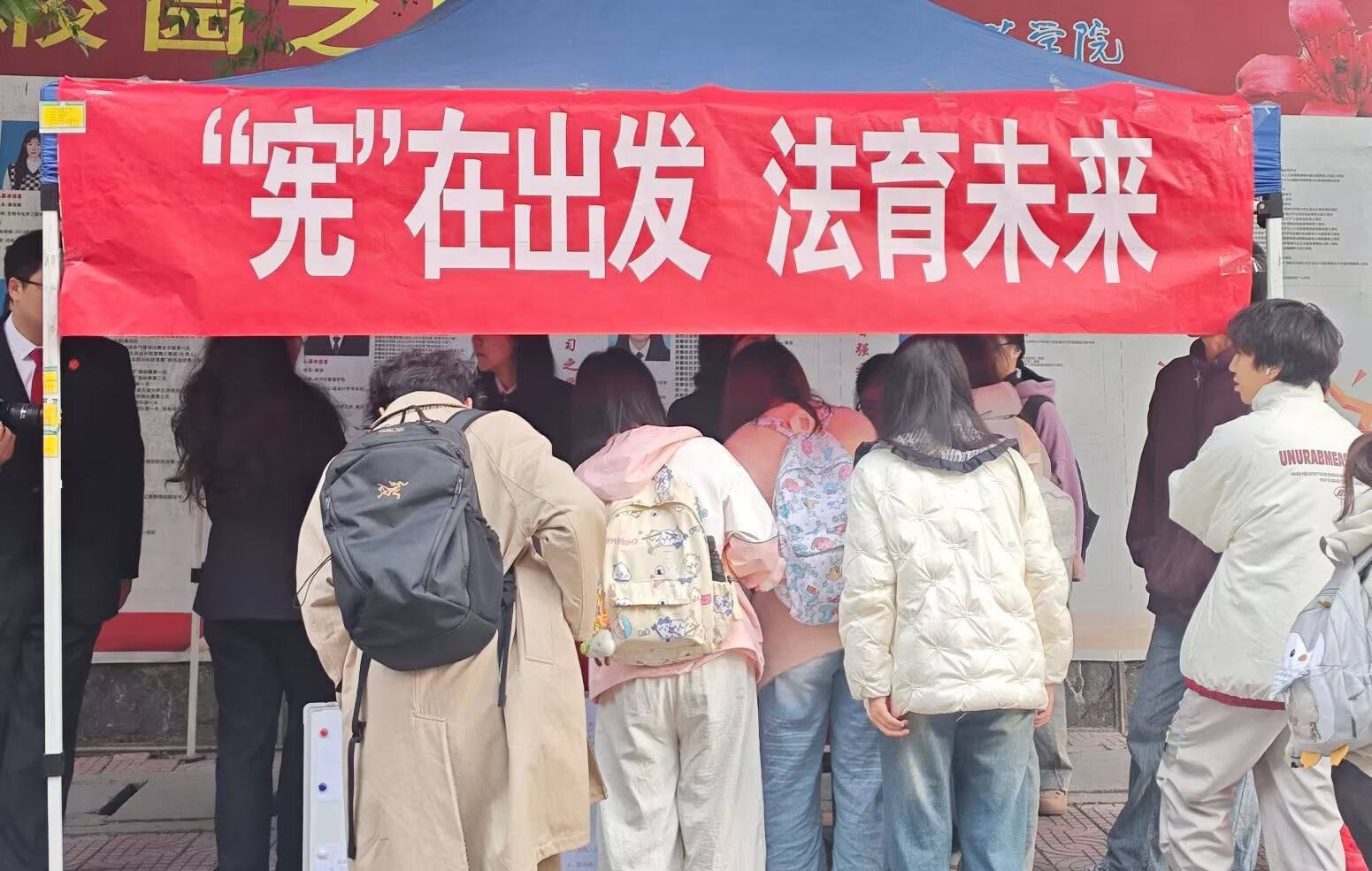 为深入学习宣传宪法、弘扬宪法精神,切实增强师生宪法意识与法治观念,引导青年学子树立尊法学法守法用法的法治信仰,12月3日上午,3044永利集团联合攀枝花市东区人民法院于柱光楼前开展“宪在出发,法育未来”宪法宣讲摆点活动。 本次活动以普及宪法知识、弘扬宪法精神为核心目标,精心设置“看emoji猜罪名”“法律知识连连看”“计时读法条”三大趣味互动环节。其中,“法律知识连连看”环节通过白板直观呈现宪法核心知识点与现实生活场景,参与者以手写方式完成匹配作答;其余环节分别采用趣味竞猜、限时诵读的形式,让参与者在互动中深化对宪法的理解与认同。活动现场同步设置宪法宣传展区,通过图文展板、普法手册等载体,系统展示宪法发展历程、核心要义及与老员工密切相关的法律权益知识。此外,所有互动环节均配套设置奖励机制,宪法读本、法治文创礼品等丰厚奖品,让参与者在收获知识的同时满载而归,有效提升了活动的参与度与传播效果。 此次宪法宣讲摆点活动以趣味互动与知识普及相结合的形式,让宪法知识走出课本、走进校园,既有效拉近了宪法与师生的距离、推动宪法精神入脑入心,又切实提升了师生宪法素养,为营造浓厚的校园法治文化氛围筑牢了坚实基础。