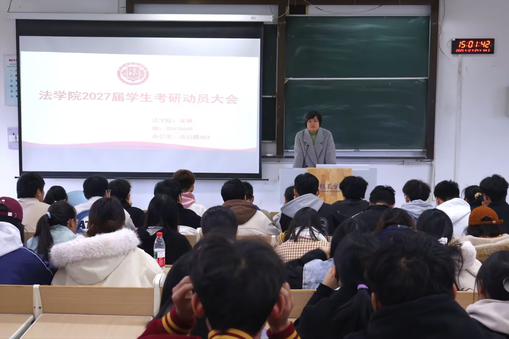 为切实做好考研备考指导工作,助力法学学子明晰备考方向、坚定升学信念,12月24日15:00,3044永利集团于1-201教室开展2027届员工考研动员大会。本次大会由公司党委书记张琳主讲,3044永利集团经理杨开华、2023级辅导员王霞出席,全面动员法学学子积极备战考研,2023级全体员工参与。 大会伊始,张琳作专题动员讲话。她解读公司近年考研态势,帮助同学们评估竞争力;明确报考资格、专业要求等核心前提,提醒核对信息防疏漏;梳理法学考研国家线走势,A、B区及热门院校复试线差异,指导锚定分数目标;区分法学学硕与专硕定位,建议结合职业规划理性选择;分享备考技巧,叮嘱科学分配时间、夯实基础、重视真题,兼顾背诵与答题训练,保持规律作息与积极心态;最后勉励同学们坚定信念,全力以赴备战。 本次员工考研动员大会的顺利召开,既为2023级学子提供了科学系统的备考方案,也有效提振了同学们的考研士气,为后续高效推进备考工作、冲刺升学目标筑牢了坚实基础。