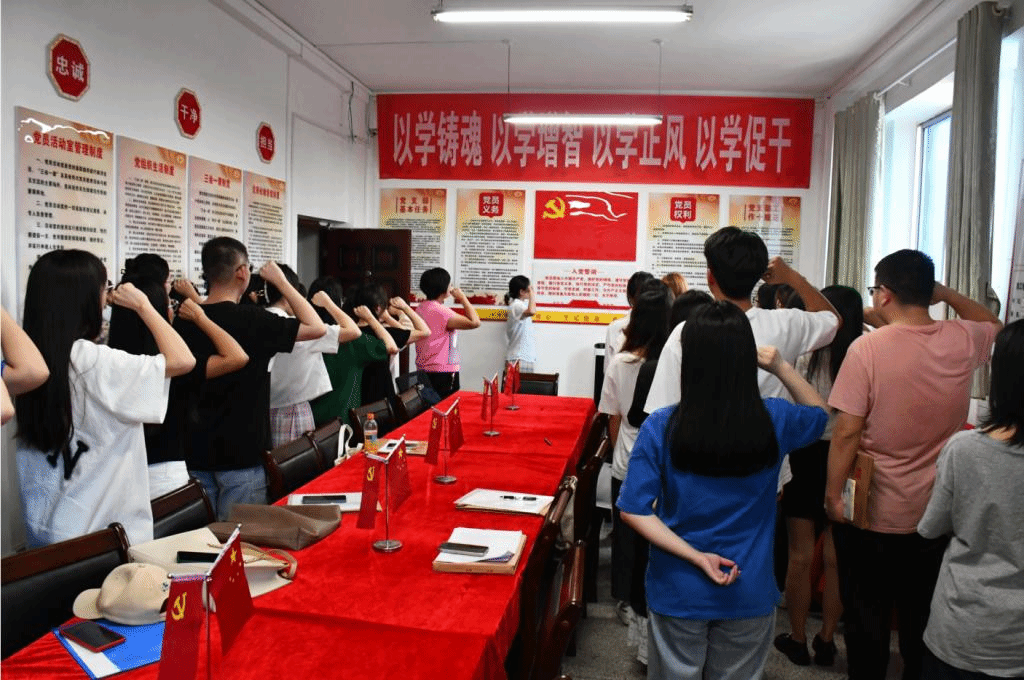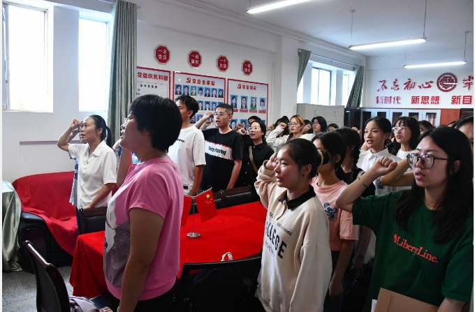 15时30分,在支部书记王霞老师的带领下,全体党员面向党旗庄严宣誓,重温了入党的誓词。