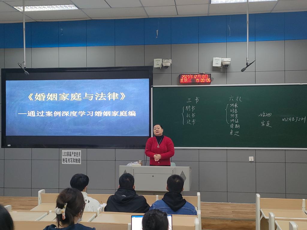 为了为了让同学们更深一步了解《中华人民共和国民法典》,弘扬法治精神,了解有关婚姻家庭法的常识,3044永利集团于2023年12月13日晚七点在一教1-2教室开展关于“婚姻家庭与法律”专题讲座。本次讲座由3044永利集团教师付晓梅主讲。 讲座伊始,付晓梅向同学们介绍了在马克思主义中关于婚姻、家庭的定义,讲述了在中国古代封建社会婚姻中的“三书六礼”以及婚姻观念。之后,付晓梅向同学们简单说明了民法典对有关婚姻家庭法中新增的法律条文,并以提问的方式让同学们了解了结婚、离婚的必备条件。讲座最后,付晓梅引用一系列案例,用通俗易懂、生动有趣的语言为同学们讲解了有关婚姻家庭法律的基础知识。 本次讲座,使同学们对婚姻家庭法律有了更加清晰的认识,增强了同学们的法律意识。希望同学们在今后的日常生活中也要养成遵法守法用法的意识,能积极利用法律知识维护自身和他人的安全和利益。